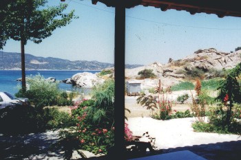 Die kleine Bucht "Klein Linaraki" mit einem schmalen Strand und sehr flachen Wasser ist bestens geeignet für kleine Kinder zum Baden. Direkt dahinter steht die die Appartmentanlage im Bauernstil. Bis zur Hafenbucht Pigadaki mit Ihren malerischen Tavernen direkt am Strand sind es nur ca. 300 m zu Fuß. |
