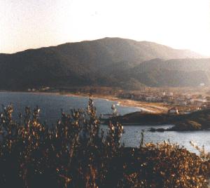 entlang eines großen, breiten Sandstrandes gegenüber dem „Heiligen