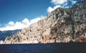 Der Legende nach entstand die felsige Küstenlandschaft, weil während des Kampfes der Giganten gegen den Göttervater Zeus hier die Geschosse niedergingen.