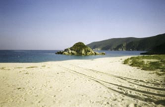 Felseninsel. Beide Buchten zeichnen sich durch feine Sandstrände