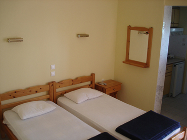 Jedes der einfach, aber zweck- mäßig ausgestatteten Zwei- bis Dreibettzimmer haben einen Balkon sowie selbstverständlich ein Bad mit einer Sitzbadewanne oder Dusche und WC sowie eine Kochecke mit Kühlschrank und allem Zubehör, das für die Zubereitung einer Mahlzeit nötig ist. Im obersten Stockwerk befindet sich ein Vierbettappartement mit einer großen Terrasse. |